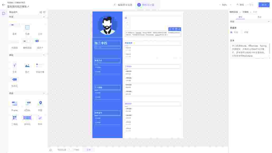 针对简历页面基于设计师平台可以快速设计出多种页面样式,,,,,,,,,满足不同客户的多样化业务需求