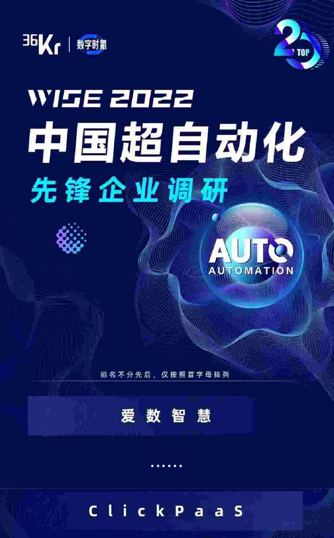 8月10日,,,,,,,由36Kr主办的WISE 2022中国超自动化峰会在杭州成功举办。。。。。。。。。EBPAY作为国内低代码PaaS平台的领军企业,,,,,,,,,,,凭借过硬的技术实力和优质的产品能力,,,,,,,在本次峰会中实力入选「2022年中国超自动化先锋企业」20强。。。。。。。。。。。